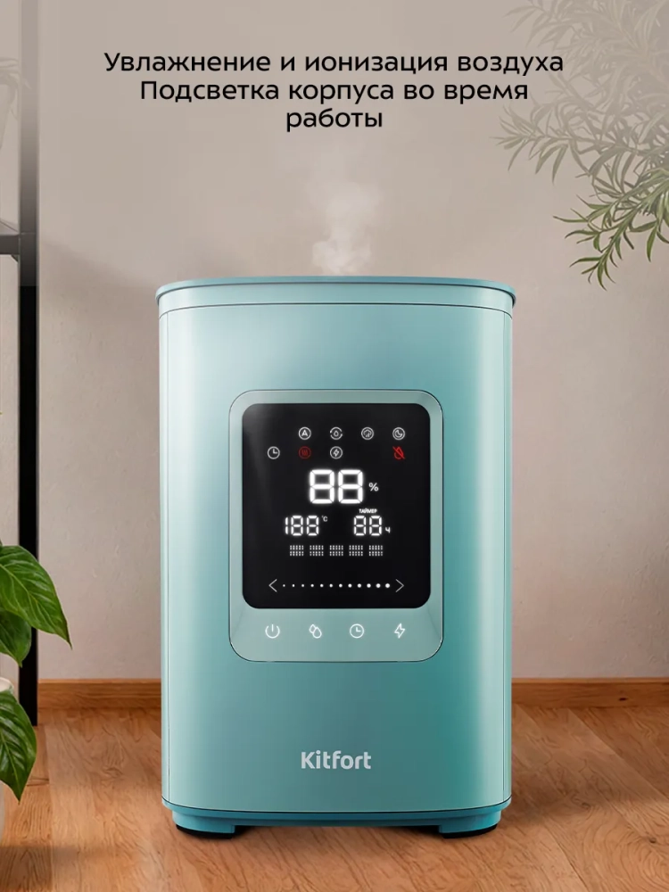 Ультразвуковой увлажнитель воздуха Kitfort KT-3821 увлажняет воздух в помещении, и ионизирует его, создавая хороший микроклимат.