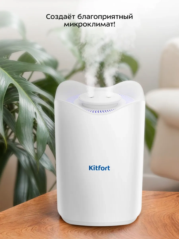 Увлажнитель воздуха Kitfort КТ-3828 — прибор, который создаст благоприятный микроклимат рядом с вами. Он будет увлажнять воздух вокруг области его размещения, поэтому можно комфортно находиться на рабочем месте, крепко спать или заниматься любыми другими делами, пока рядом с вами находится увлажнитель воздуха.