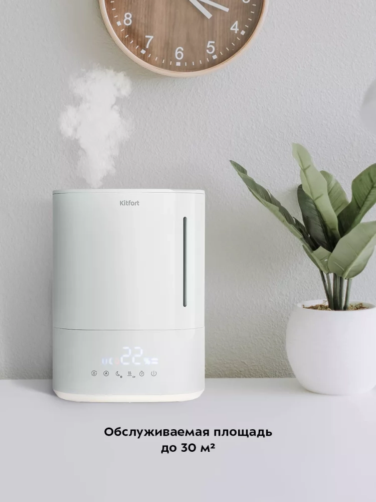 Ультразвуковой увлажнитель воздуха Kitfort KT-3839 увлажняет воздух в помещении, создавая хороший микроклимат для проживания людей. Увлажнитель КТ-3839 может использоваться в помещениях, площадь которых не превышает 30 м².