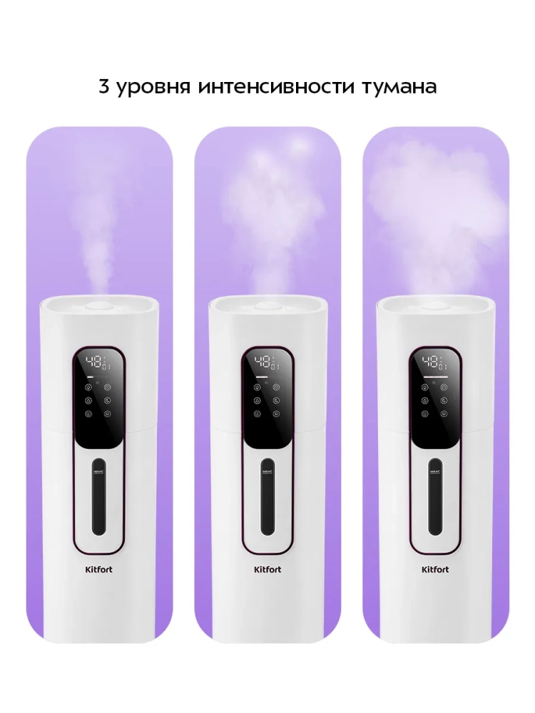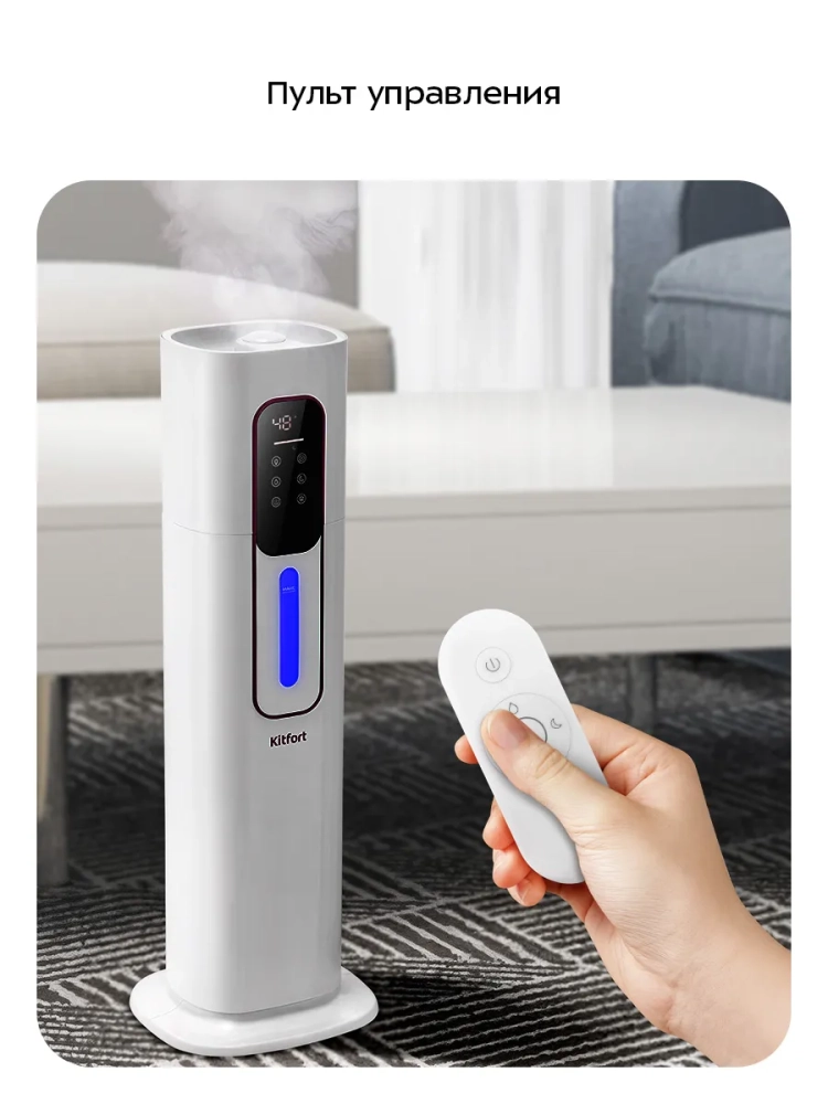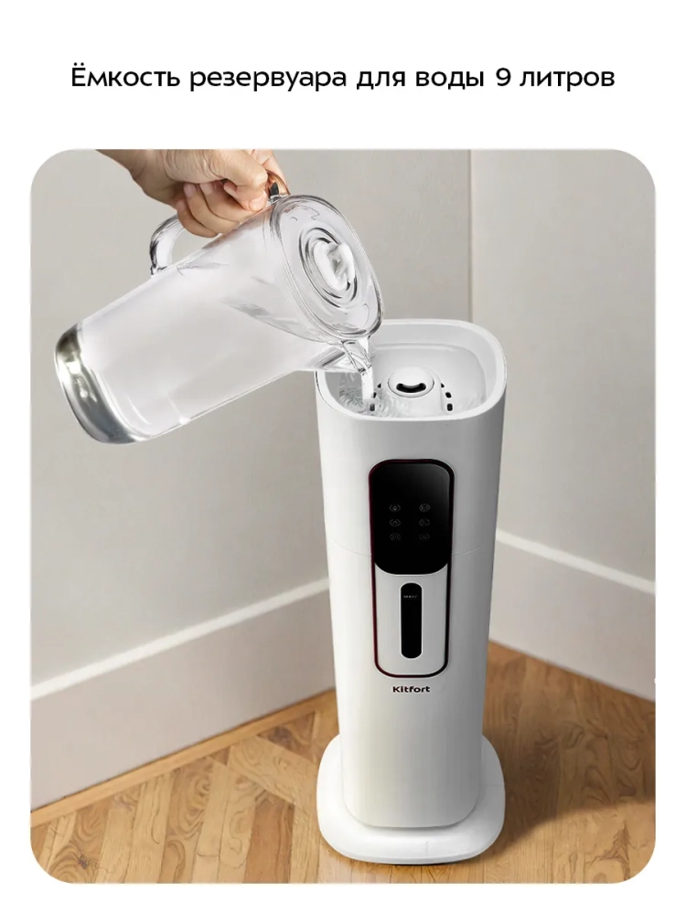 Ультразвуковой увлажнитель воздуха Kitfort KT-3860 увлажняет воздух в помещении, создавая хороший микроклимат для проживания людей. Увлажнитель КТ-3860 простой в эксплуатации и обслуживании, отличается высокой надежностью работы. Может использоваться в помещениях, площадь которых не превышает 30 м². Напольная конструкция обеспечивает удобство размещения устройства в помещении. Благодаря большому объему резервуара для воды увлажнитель может работать непрерывно 25–26 часов при максимальной интенсивности испарения.