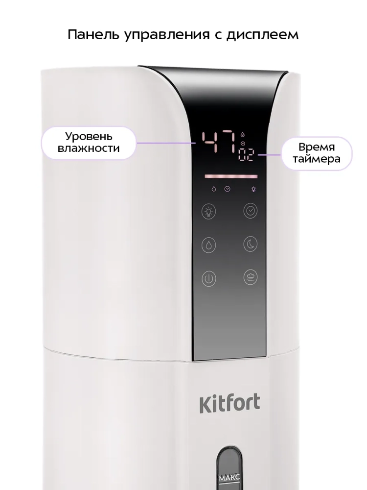 Таймер работы увлажнителя: 1–14 ч с шагом 1 ч.