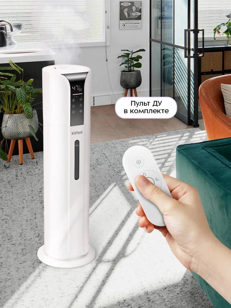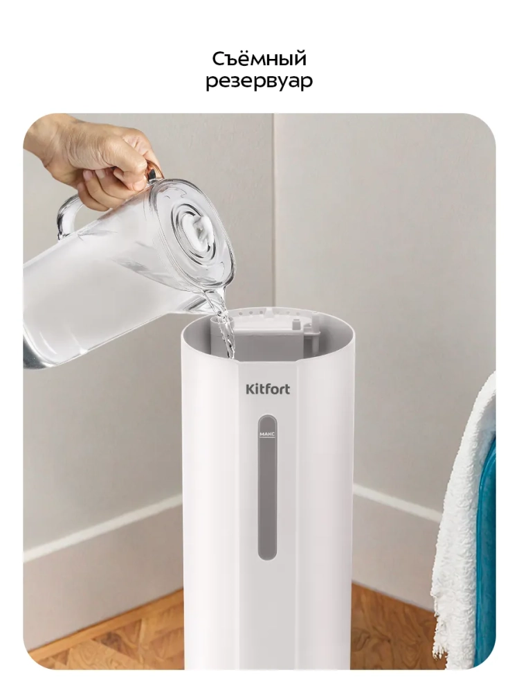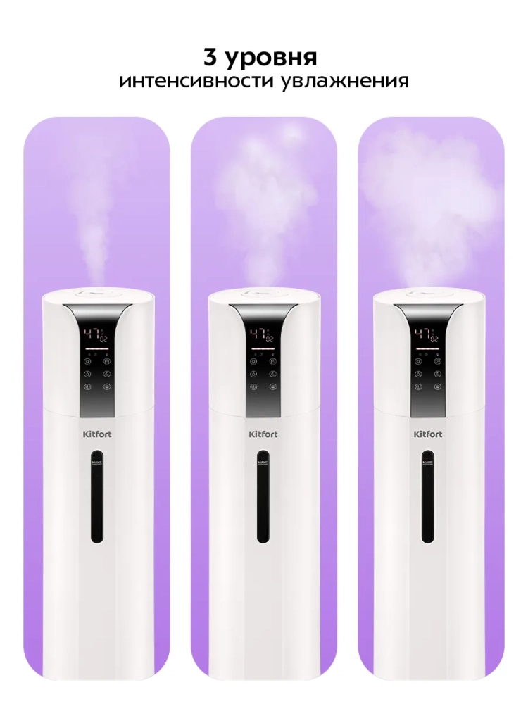 Ультразвуковой увлажнитель воздуха Kitfort KT-3861 увлажняет воздух в помещении, создавая хороший микроклимат для проживания людей. Увлажнитель КТ-3861 простой в эксплуатации и обслуживании, отличается высокой надежностью работы. Может использоваться в помещениях, площадь которых не превышает 30 м². Напольная конструкция обеспечивает удобство размещения устройства в помещении. Благодаря большому объему резервуара для воды увлажнитель может работать непрерывно 25–26 часов при максимальной интенсивности испарения.