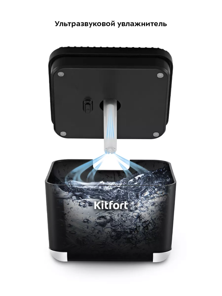 КТ-3810 является ультразвуковым увлажнителем, который считается более эффективным из существующих увлажнителей воздуха. Принцип работы такого увлажнителя прост: в резервуар для воды погружена трубка, внутри которой находится подпружиненный фильтр, по которому благодаря капиллярному эффекту влага поднимается вверх к излучателю, который с помощью ультразвуковых колебаний выбивает из воды мельчайшие капельки воды, создавая туман. Этот туман выдувается наружу, а затем частицы воды разносятся по объему помещения потоком воздуха.