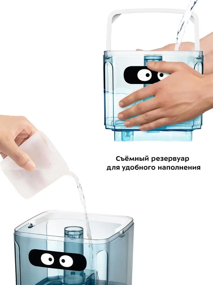 Управлять увлажнителем можно с помощью сенсорных кнопок на устройстве или с помощью пульта дистанционного управления. Вы можете выбрать один из трех уровней интенсивности увлажнения. Есть возможность установить таймер отключения от 1 до 8 часов. Также устройство оповестит вас, если вода в резервуаре закончится.
