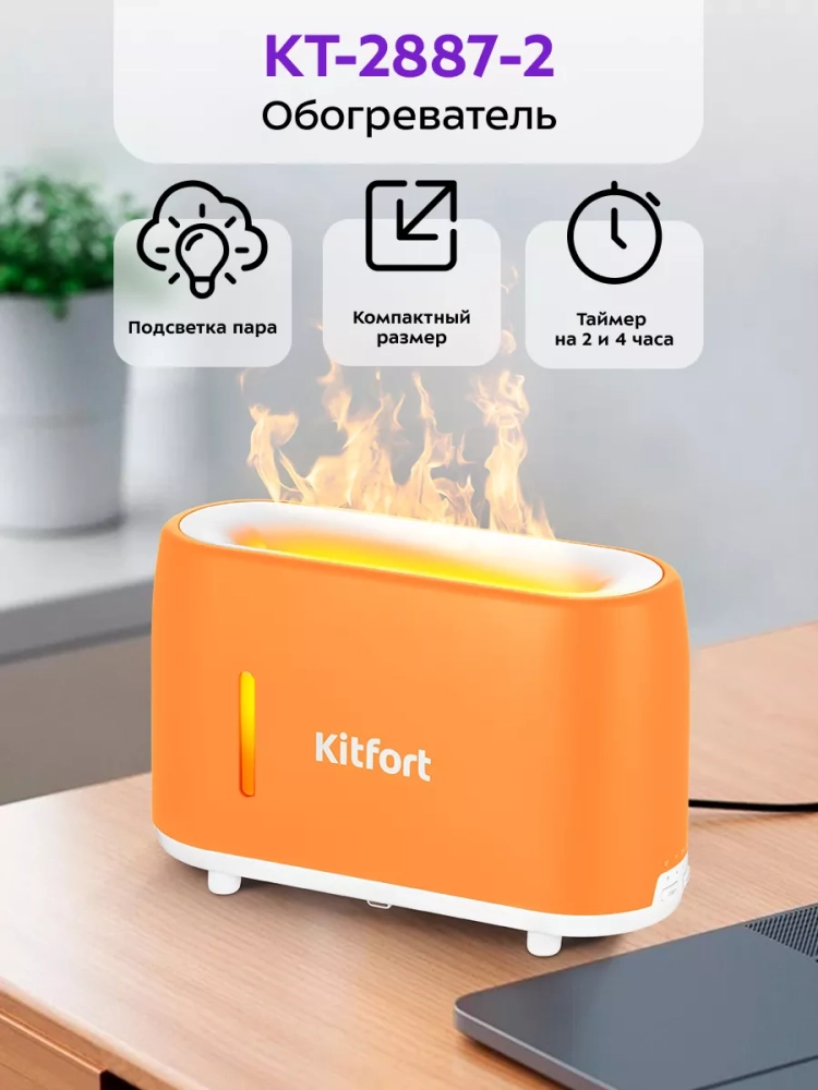 Увлажнитель-ароматизатор воздуха Kitfort KT-2887 — компактный портативный прибор, который будет увлажнять и ароматизировать воздух вокруг области его размещения, поэтому можно комфортно находиться на рабочем месте, крепко спать или заниматься любыми другими делами, пока рядом с вами находится увлажнитель воздуха.