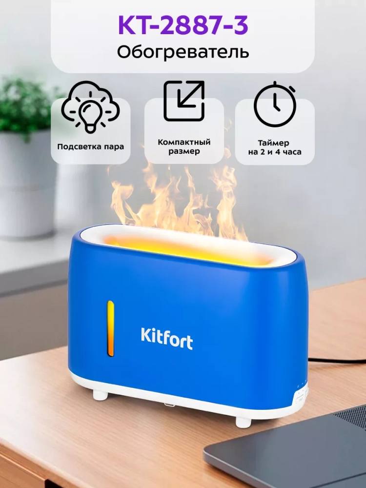 Увлажнитель-ароматизатор воздуха Kitfort KT-2887 — компактный портативный прибор, который будет увлажнять и ароматизировать воздух вокруг области его размещения, поэтому можно комфортно находиться на рабочем месте, крепко спать или заниматься любыми другими делами, пока рядом с вами находится увлажнитель воздуха.