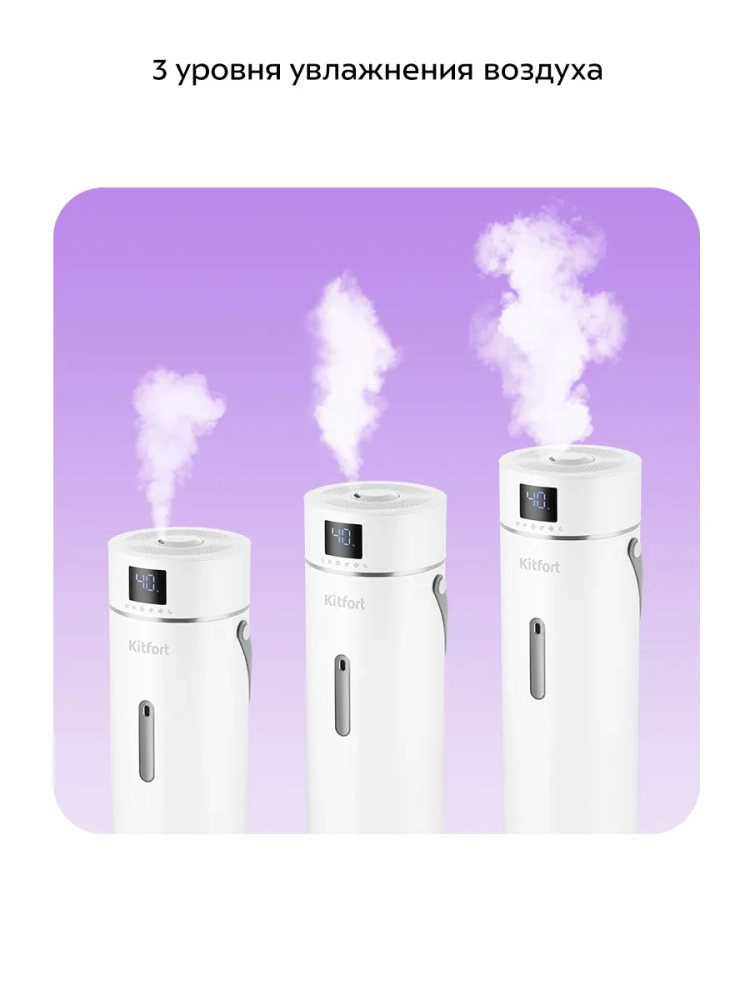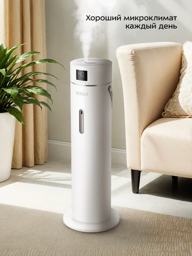 Ультразвуковой увлажнитель воздуха Kitfort KT-3848 увлажняет воздух в помещении, создавая хороший микроклимат для проживания людей. Увлажнитель КТ-3848 простой в эксплуатации и обслуживании, отличается высокой надежностью работы. Может использоваться в помещениях, площадь которых не превышает 30 м². Напольная конструкция обеспечивает удобство размещения устройства в помещении. Благодаря большому объему резервуара для воды увлажнитель может работать непрерывно 32 часа на максимальной мощности.
