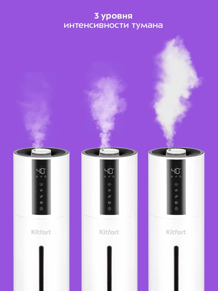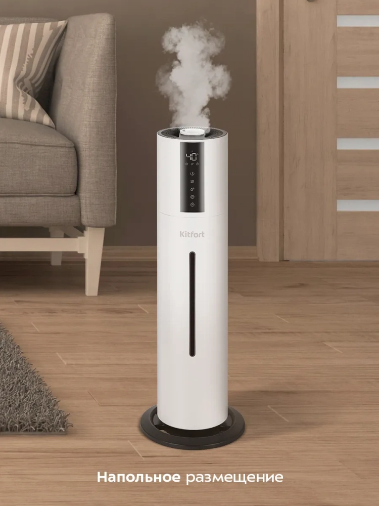 Ультразвуковой увлажнитель воздуха Kitfort KT-3851 увлажняет воздух в помещении, создавая хороший микроклимат. Увлажнитель КТ-3851 прост в эксплуатации и обслуживании, отличается высокой надежностью работы. Может использоваться в помещениях, площадь которых не превышает 30 м². Напольная конструкция обеспечивает удобство размещения устройства в помещении. Благодаря большому объему резервуара для воды увлажнитель может работать непрерывно 24 часа на максимальной мощности.