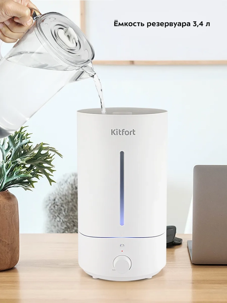 Ультразвуковой увлажнитель воздуха Kitfort KT-2883 создает хороший микроклимат для проживания людей, повышая влажность воздуха в помещении.