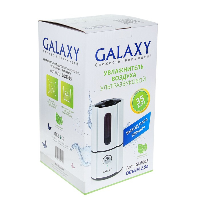 Увлажнитель воздуха Galaxy GL 8003, ультразвуковой, 35 Вт, 2.5 л, 25 м2, белый