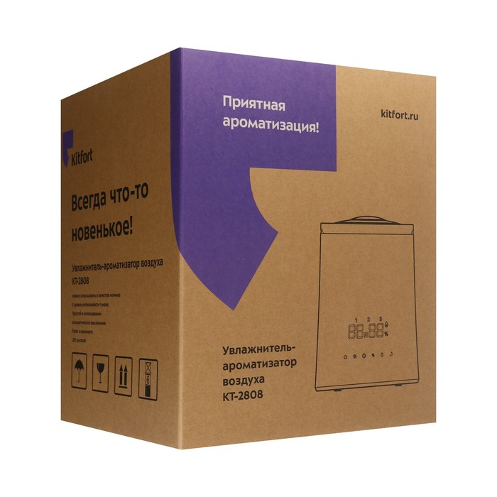 Kitfort KT-2808 увлажняет воздух в помещении, создавая хороший микроклимат. В комплект с увлажнителем входит пульт дистанционного управления.
