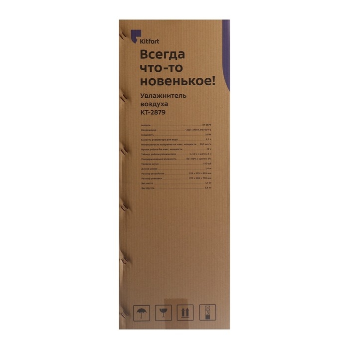 Увлажнитель воздуха Kitfort КТ-2879, ультразвуковой, 25 Вт, 6.7 л, 30 м2, бело-фиолетовый