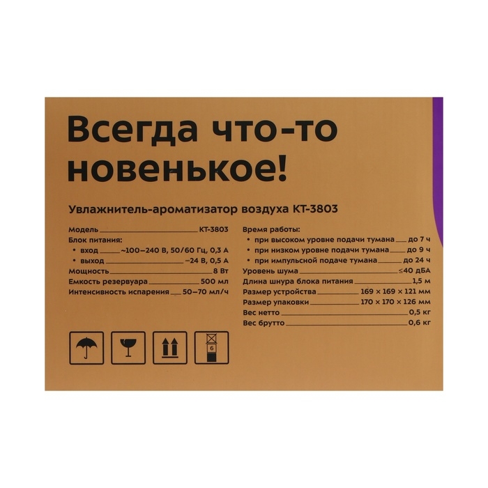 Увлажнитель воздуха Kitfort КТ-3803, ультразвуковой, 800 Вт, 0.5 л, коричневый