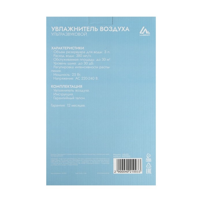 Увлажнитель LuazON LHU-05 повышает содержание водяных паров в помещении. Если воздух пересушен из-за погодных условий или батарей отопления, прибор доведёт влажность до нормального значения. Устройство освежит помещение и позволит вам легче дышать.