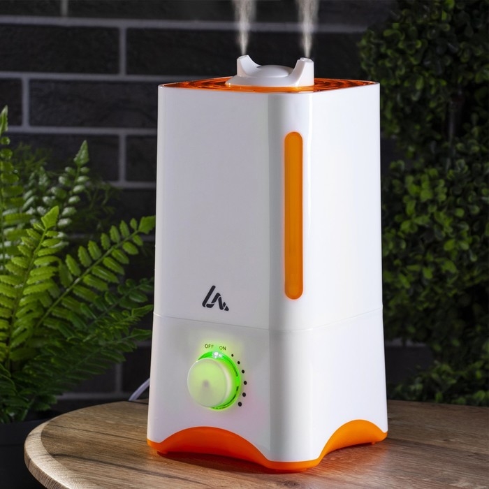 Увлажнитель воздуха Luazon LHU-05, ультразвуковой, 25 Вт, 3 л, 30 м2, бело-оранжевый