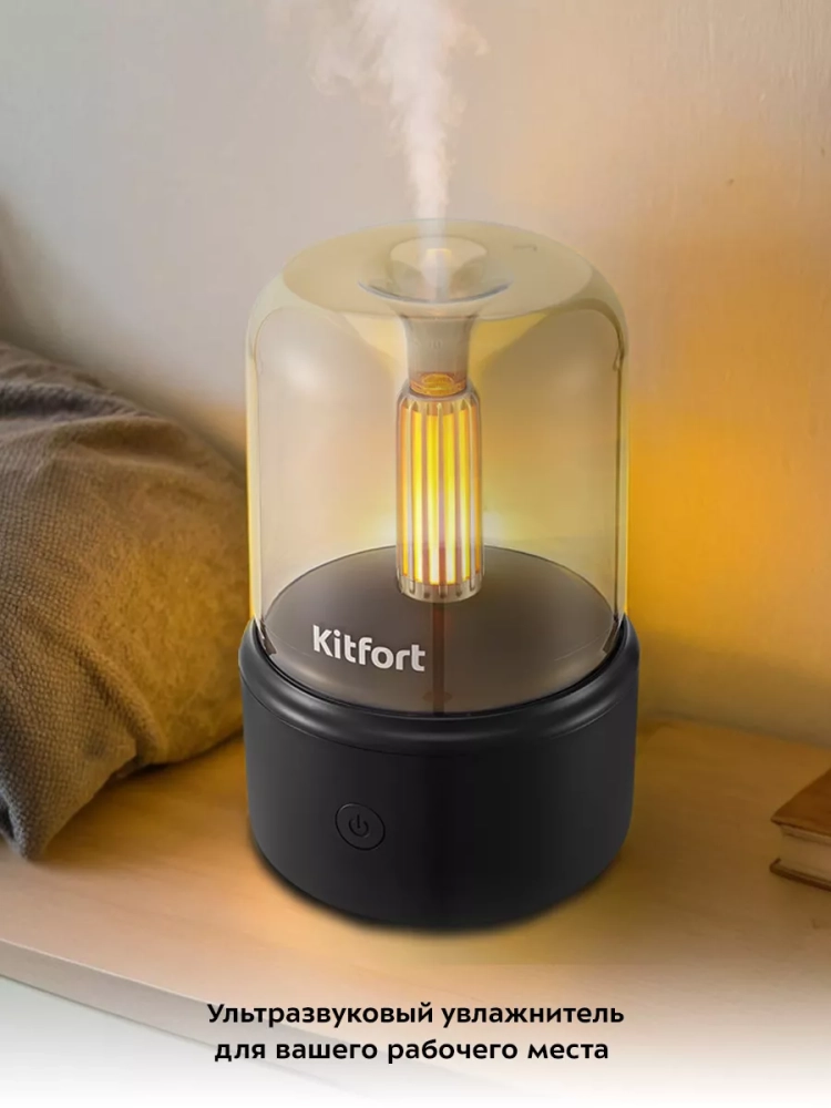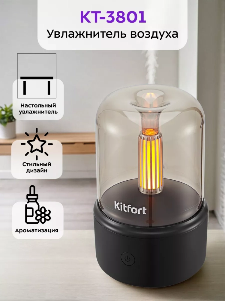 Увлажнитель-ароматизатор воздуха Kitfort KT-3801 — компактный прибор, который создаст благоприятный микроклимат рядом с вами. Добавьте в резервуар для воды несколько капель аромамасла на водной основе, чтобы во время работы прибора ароматическое вещество испарялось и вместе с туманом выдувалось наружу потоком воздуха, создавая вокруг приятный и ненавязчивый аромат. Устройство будет увлажнять воздух вокруг области его размещения, поэтому можно комфортно находиться на рабочем месте, крепко спать или заниматься любыми другими делами, пока рядом с вами находится увлажнитель-ароматизатор воздуха. Вы также можете включить подсветку, не включая подачу тумана.