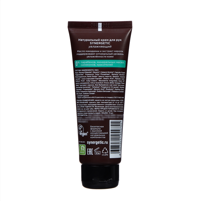 Увлажняющий крем для рук SYNERGETIC "Масло макадамии и нероли", 75 мл