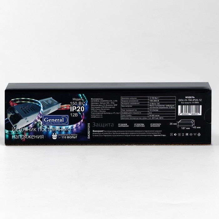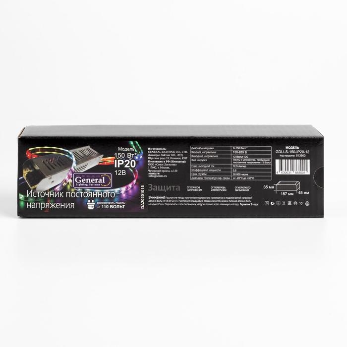 Узкий блок питания General для светодиодной ленты 12 В, 150 Вт, IP20