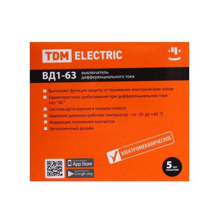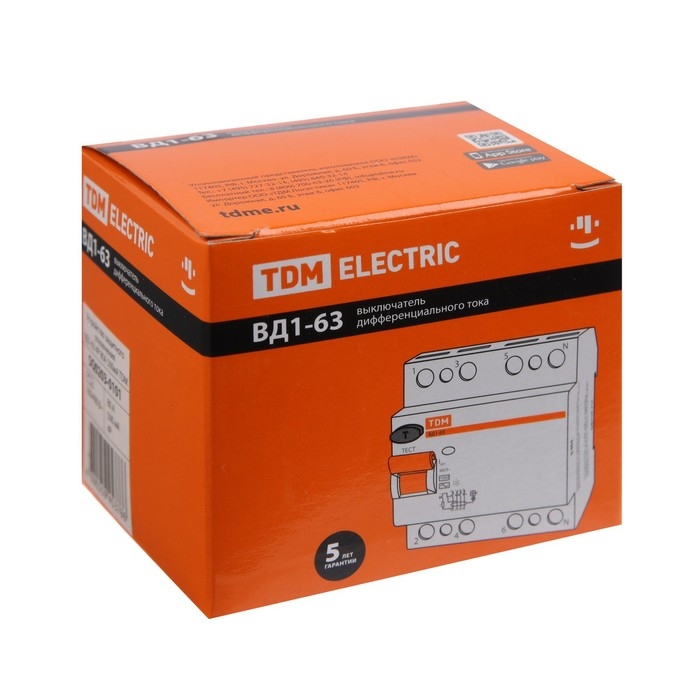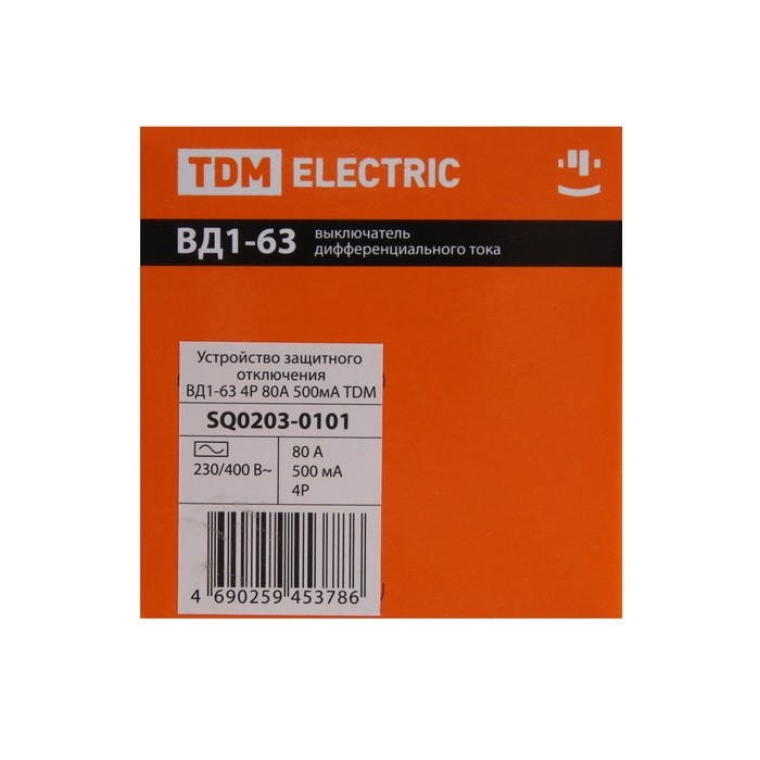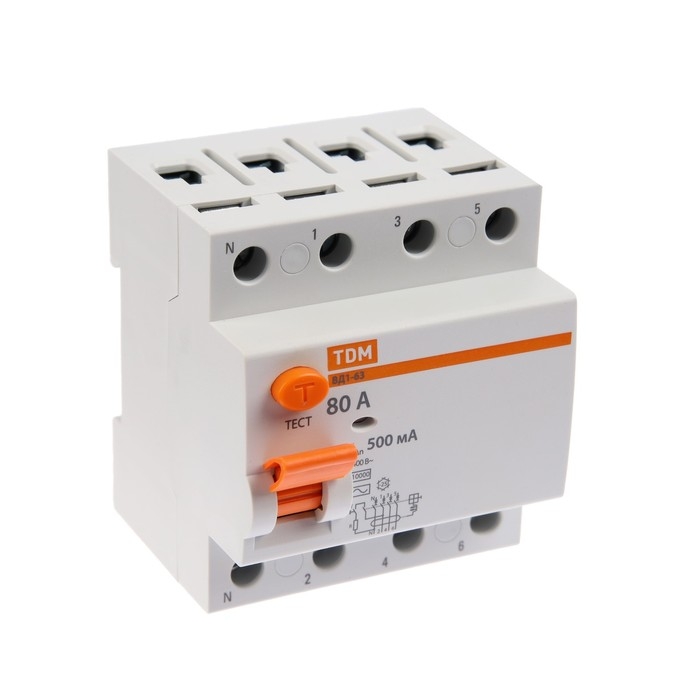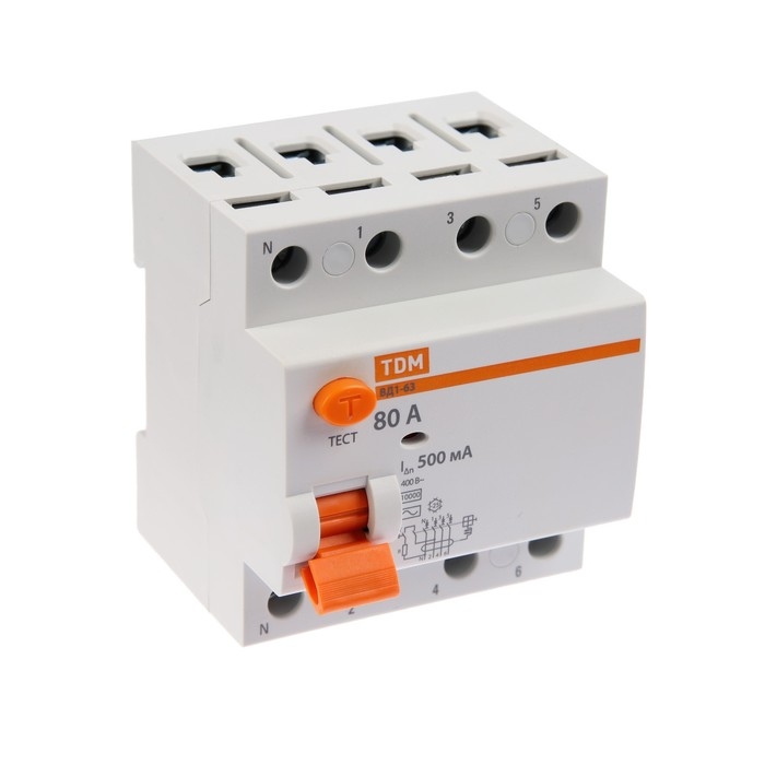 УЗО TDM ВД1-63, 4п, 80 А, 500мА, SQ0203-0101