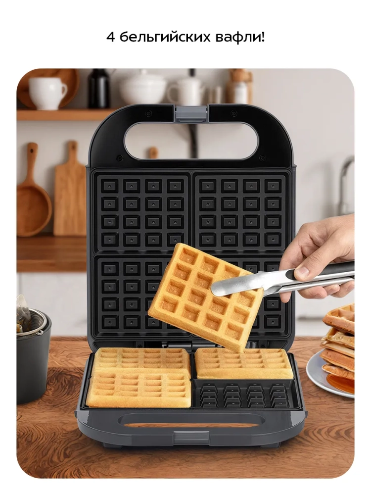 Вафельница для бельгийских вафель КТ-3636 - 1400 Вт от Kitfort станет незаменимым помощником на вашей кухне. С её помощью вы сможете приготовить четыре аппетитные бельгийские вафли одновременно, что идеально подходит для семейного завтрака или угощения гостей. Антипригарное покрытие панелей гарантирует, что тесто не прилипнет в процессе выпечки, а также позволяет использовать минимальное количество масла, что делает процесс приготовления более здоровым и экономичным. Эта электровафельница оснащена индикаторами питания и нагрева, которые помогут вам контролировать процесс приготовления. Термостат поддерживает оптимальную температуру панелей для равномерного пропекания вафель. Удобный фиксатор крышки обеспечивает безопасное хранение и транспортировку устройства. Вафельница работает от сети с напряжением ~220–240 В и частотой 50/60 Гц. Её мощность составляет 1400 Вт, что обеспечивает быстрое нагревание и приготовление вкусных вафель за считанные минуты. Длина шнура составляет 0,7 м — это оптимально для использования на кухне без лишних проводов. Размеры панели составляют 254 х 215 мм, а габариты устройства — всего лишь 260 х 318 х 90 мм, благодаря чему она легко разместится даже на небольшой кухне или в шкафу при хранении на кухне. Класс защиты от поражения электрическим током I гарантирует безопасность использования прибора. Эта электро модель Китфорт идеально впишется в интерьер любой кухни благодаря своему современному дизайну и функциональности. Если вы ищете всё для кухни или хотите обновить свою коллекцию приборов для выпечки — эта вафельница станет отличным выбором!