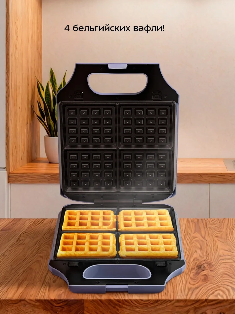 Вафельница для бельгийских вафель КТ-3643 от Kitfort — это идеальное решение для любителей домашней выпечки. С помощью этой электровафельницы вы сможете приготовить 4 аппетитные бельгийские вафли одновременно, что значительно экономит время и усилия. Антипригарное покрытие панелей предотвращает прилипание теста, позволяя готовить с минимальным количеством масла и облегчая процесс чистки. Съемные сменные панели можно легко мыть под проточной водой, что делает уход за прибором простым и удобным. Эта вафельница оснащена индикаторами питания и нагрева, а также термостатом для поддержания оптимальной температуры панелей во время приготовления. Фиксатор крышки обеспечивает надежное закрытие устройства, что удобно как при хранении, так и при транспортировке. Работает прибор от сети с напряжением ~220–240 В на частоте 50/60 Гц. Мощность техники составляет 1400 Вт, что позволяет быстро разогревать панели до нужной температуры. Класс защиты от поражения электрическим током I гарантирует безопасность использования прибора в домашних условиях. Длина шнура составляет 0,7 м — достаточно для комфортного подключения к розетке без лишних удлинителей. Размеры панели составляют 254 х 215 мм, а габариты самого устройства — 268 х 324 х 103 мм. Это компактная модель не займет много места на кухне или в шкафу при хранении. Электровафельница Kitfort КТ-3643 станет отличным помощником на вашей кухне благодаря своей функциональности и простоте использования.