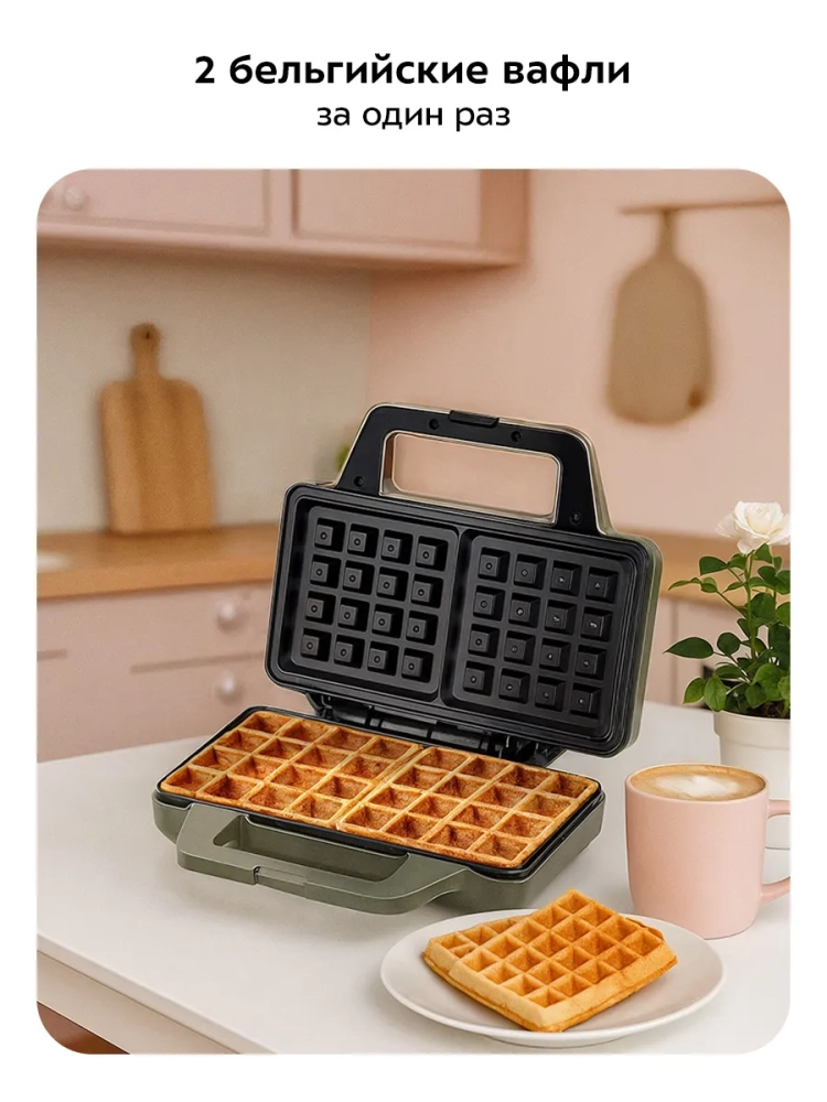 Вафельница для бельгийских вафель КТ-3650 от Kitfort — это идеальное решение для любителей домашней выпечки, удобная бытовая кухонная техника. С помощью этой электровафельницы Китфорт вы сможете приготовить две аппетитные бельгийские вафли одновременно, что значительно экономит ваше время. Антипригарное покрытие панелей предотвращает прилипание теста, позволяя готовить с минимальным количеством масла и облегчая процесс чистки после использования. Эта вафельница оснащена индикаторами питания и нагрева, которые помогут вам контролировать процесс приготовления. Термостат поддерживает оптимальную температуру панелей, обеспечивая равномерное пропекание каждой вафли. Удобный фиксатор позволяет удерживать крышку в закрытом состоянии, что делает хранение и транспортировку устройства более удобными. Работает прибор от сети с напряжением 220–240 В и частотой 50/60 Гц. Мощность устройства составляет 1000 Вт, что обеспечивает быстрое нагревание и приготовление ваших любимых лакомств. Длина шнура составляет 0,7 м — достаточно для комфортного размещения на кухне. Размеры панели составляют 280 х 150 мм, а габариты самого устройства — 285 х 250 х 100 мм. Это компактная модель легко впишется в интерьер любой кухни без лишних хлопот. Электровафельница Kitfort КТ-3650 не только функциональна, но и безопасна в использовании благодаря классу защиты I от поражения электрическим током. Она станет незаменимым помощником на вашей кухне как для повседневного использования, так и для особых случаев.