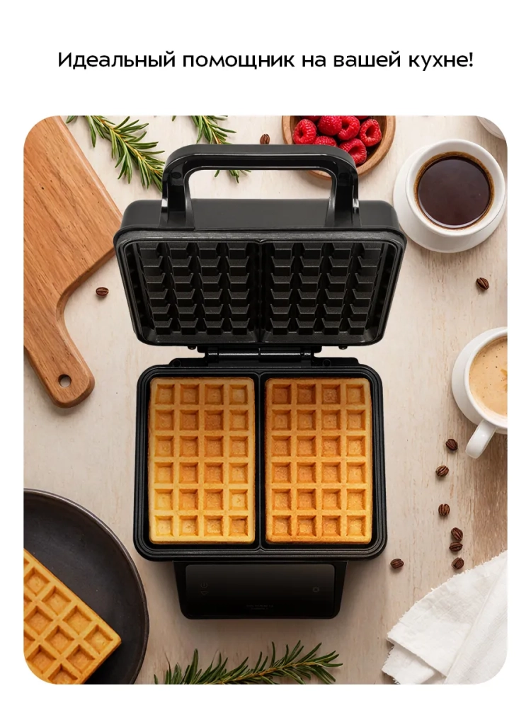 С помощью электрической вафельницы «2 в 1» Kitfort КТ-4606 вы сможете испечь сразу две бельгийские вафли. Также прибор оснащен встроенными электронными весами с дисплеем, что позволит вам взвешивать ингредиенты при приготовлении теста для вафель и других блюд.