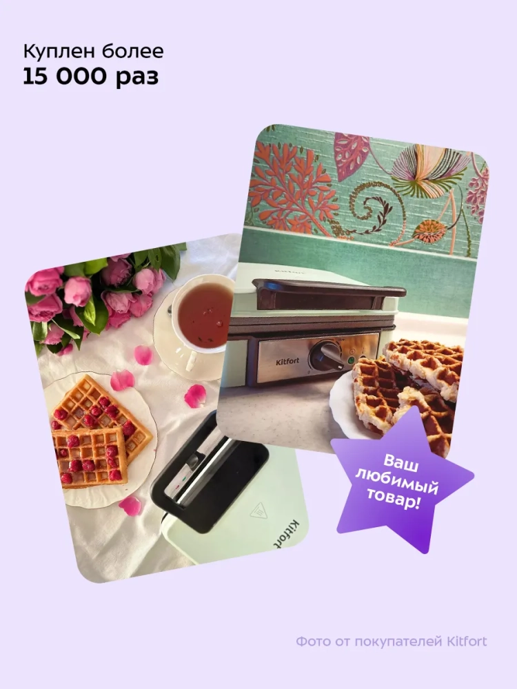 Идеальный подарок на любой случай: на Новый год, 23 февраля, 8 марта, день рождения, свадьбу или юбилей! Эта электрическая вафельница имеет независимые нагреватели в каждой половинке формы, что способствует равномерному распределению тепла и качественному приготовлению ваших любимых десертов. Корпус прибора выполнен из термоустойчивого пластика, а антипригарное покрытие форм предотвращает прилипание теста, облегчая процесс готовки и ухода за устройством. На нижней части корпуса предусмотрено место для хранения шнура, что делает хранение прибора более удобным. Противоскользящие ножки обеспечивают устойчивость на любой поверхности во время работы устройства. Kitfort КТ-1693 — это не просто электровафельница; это надежный помощник на вашей кухне! Благодаря этому прибору вы сможете быстро приготовить как классические венские вафли, так и другие виды выпечки по вашему вкусу. Электрический прибор от Kitfort станет незаменимым элементом вашего кухонного арсенала.
