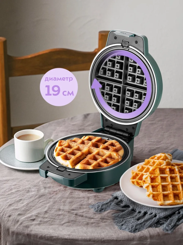 С помощью электрической вафельницы Kitfort КТ-3644 вы сможете печь бельгийские вафли, которые при желании можно разделить на треугольники. Вафельница рассчитана на приготовление 1 круглой вафли или 4 треугольных вафель.