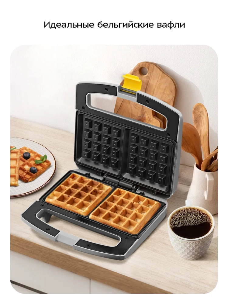 С помощью вафельницы Kitfort КТ-3656 вы сможете испечь 2 бельгийские вафли за один раз.