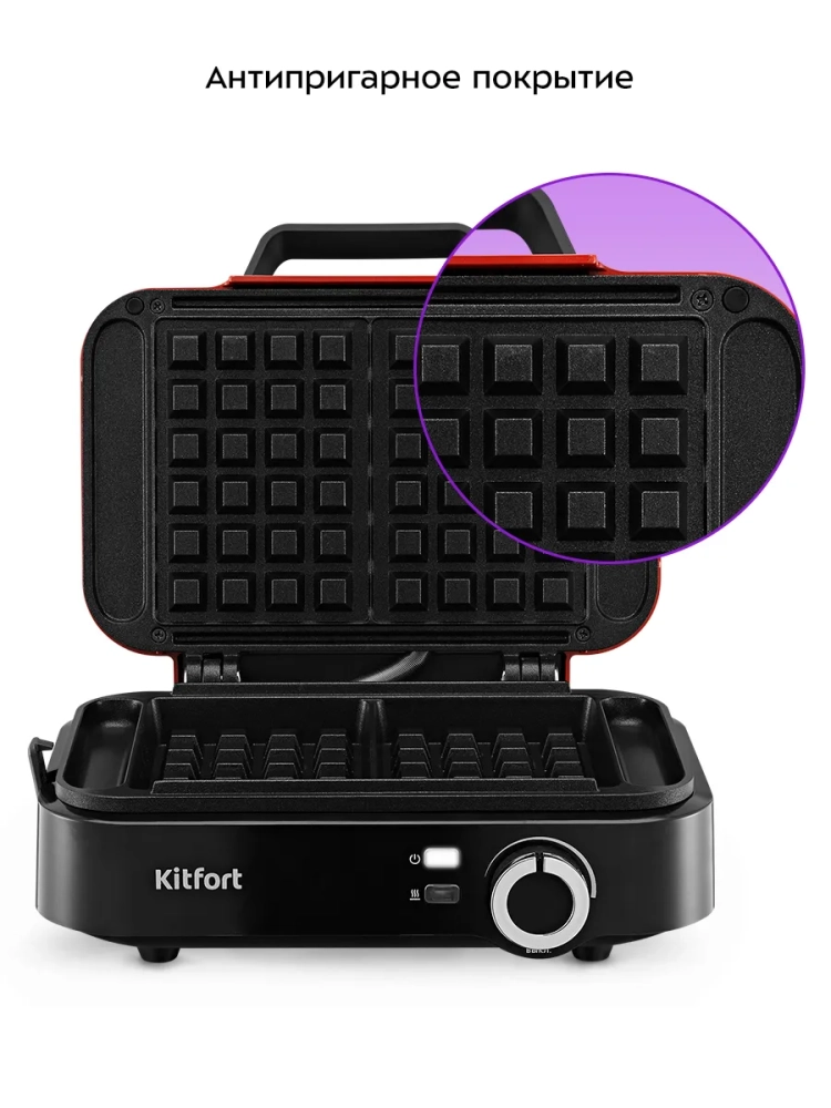 С помощью вафельницы Kitfort КТ-4672 вы сможете испечь 2 бельгийские вафли за один раз. Данная модель оснащена регулятором температуры, что позволит вам настраивать температуру приготовления вафель.