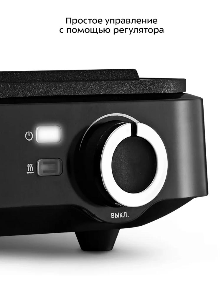 Антипригарное покрытие панелей вафельницы не дает прилипнуть тесту в процессе приготовления и позволяет готовить с минимальным количеством масла. Также антипригарное покрытие облегчает чистку панелей. Вафельница оснащена индикаторами питания и нагрева, а также термостатом для поддержания температуры панелей.