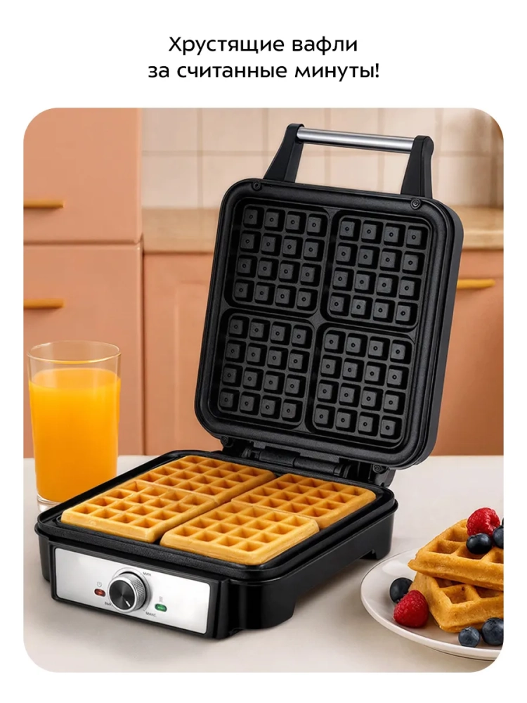 Электрическая вафельница Kitfort КТ-5607 — это идеальный прибор для приготовления вкусных и ароматных бельгийских вафель. Эта электровафельница станет вашим надежным помощником на кухне, обеспечивая равномерный прогрев и хрустящую корочку вафель. Благодаря мощному нагревательному элементу, вафельница Kitfort позволяет приготавливать вафли всего за несколько минут, что делает её незаменимой для быстрого завтрака или десерта.
