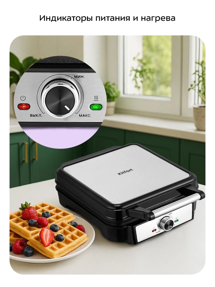 Купить вафельницу Kitfort — значит сделать выбор в пользу качества и удобства. Этот прибор идеально подходит для приготовления как классических бельгийских, так и венских вафель. Вафельницы Kitfort — это техника, которая делает выпечку простой и быстрой, обеспечивая вас и ваших близких вкусными и ароматными вафлями в любое время. Благодаря Kitfort, вы сможете наслаждаться идеальными вафлями, которые станут украшением любого завтрака или десерта.