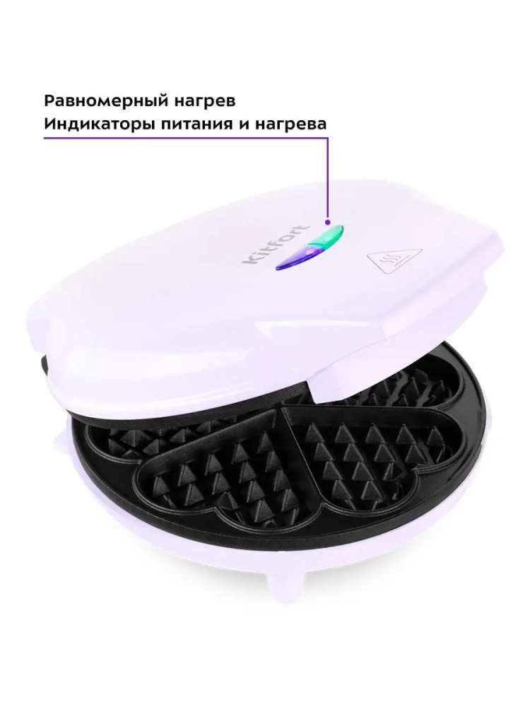 Электрическая вафельница Kitfort КТ-1688 поможет испечь толстые бельгийские вафли. Вафельница KT-1688 рассчитана на приготовление 1 большой вафли, которую при желании можно разделить на 5 вафель в форме сердечек. Компактный размер вафельницы позволяет экономить место на кухне.