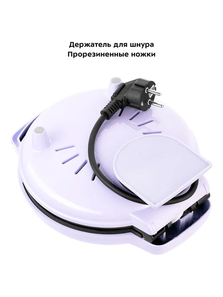 На нижней части корпуса расположен держатель шнура, обеспечивающий удобство переноски и хранения. Прорезиненные ножки не дают прибору скользить по столу во время готовки. Корпус выполнен из пластика.