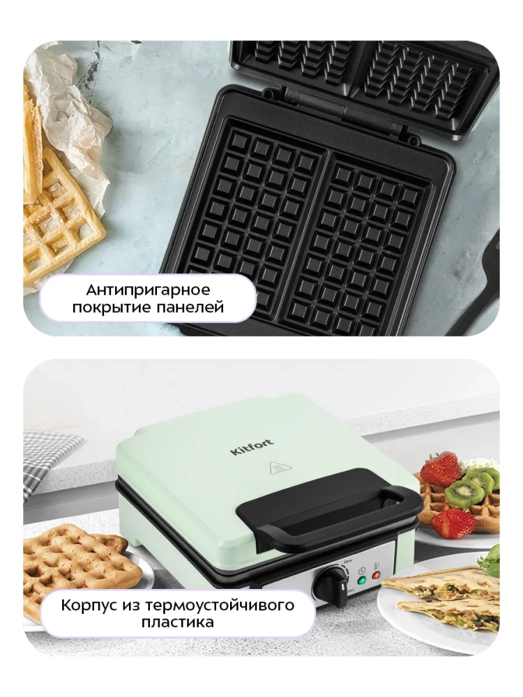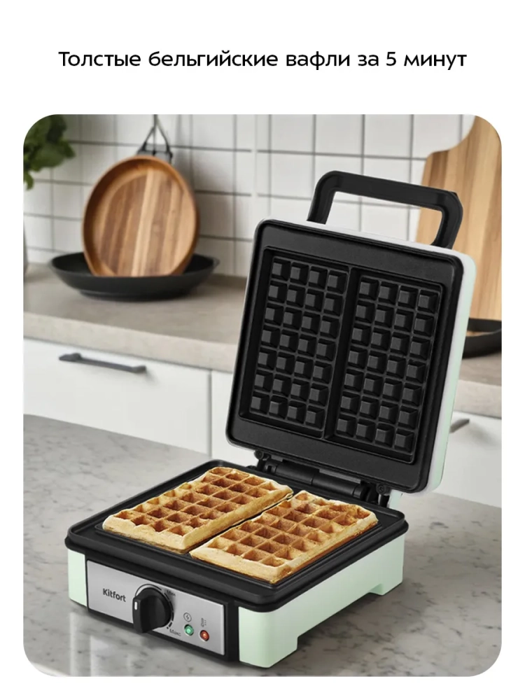 С помощью электрической вафельницы Kitfort КТ-1693 можно испечь толстые бельгийские вафли.