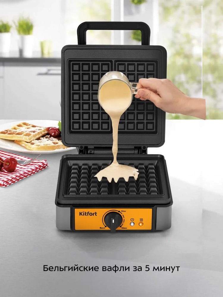 С помощью электрической вафельницы Kitfort КТ-1694 можно испечь толстые бельгийские вафли.