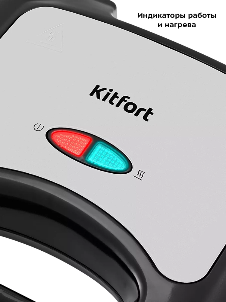 Вафельница оснащена индикаторами работы и нагрева, а также термостатом для поддержания температуры панелей.