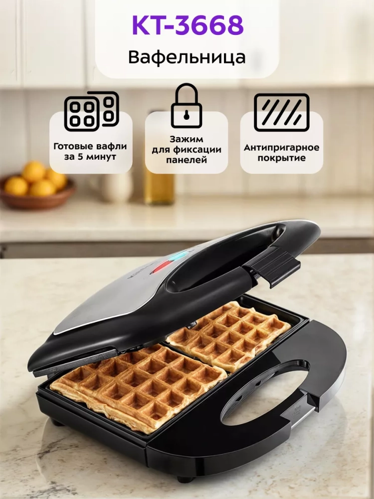Вафельница электрическая для венских вафель КТ-3668 - 750 Вт