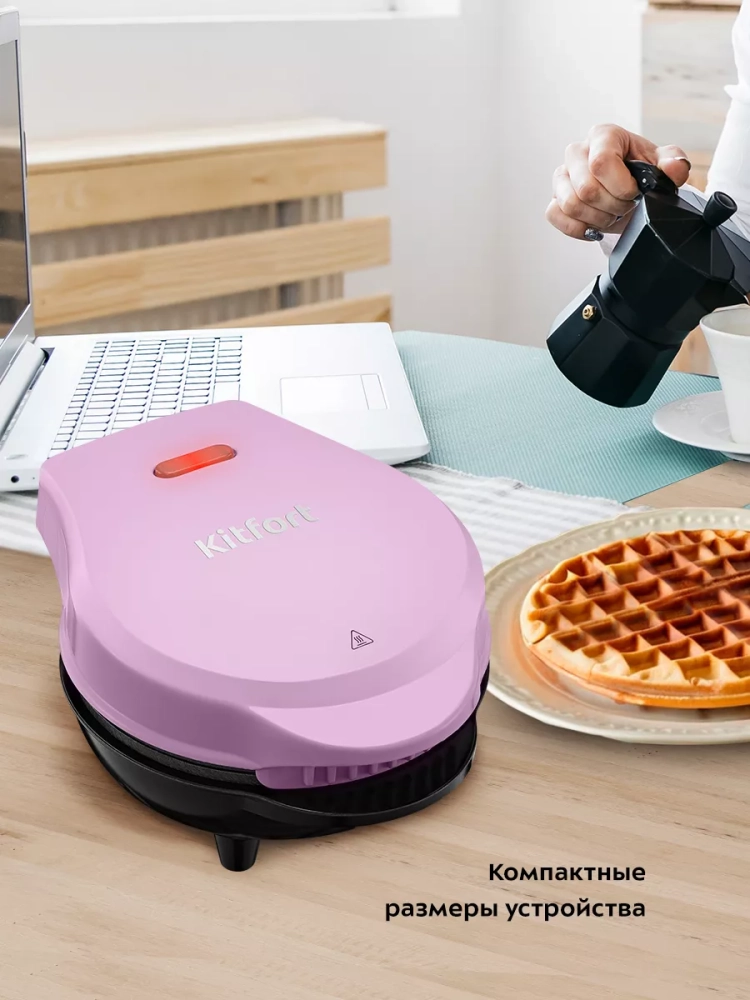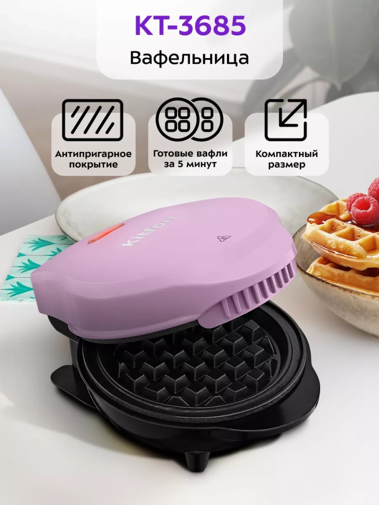 С помощью электрической вафельницы Kitfort КТ-3685 вы сможете печь круглые бельгийские вафли. Вафельница рассчитана на приготовление 1 вафли за один раз. Компактный размер вафельницы позволяет экономить место на кухне. Также небольшой размер вафельницы облегчает уход за прибором, поэтому вы сможете готовить вафли с удовольствием даже на завтрак, когда времени на приготовление и уборку мало.