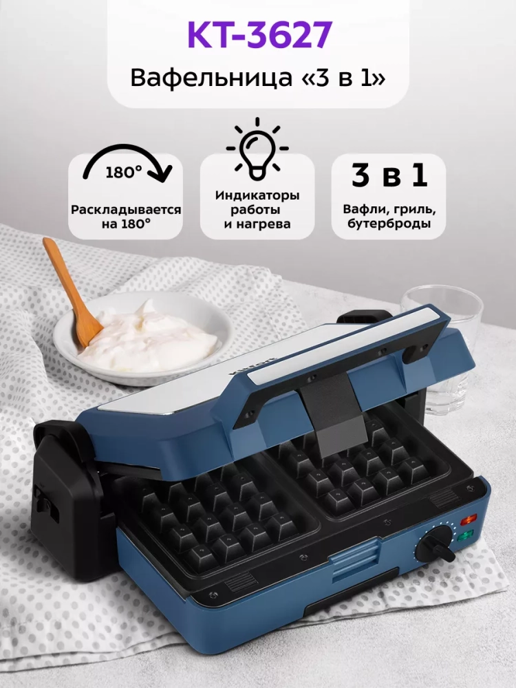 Вафельница электрическая КТ-3627 (3 в 1) - 1200 Вт