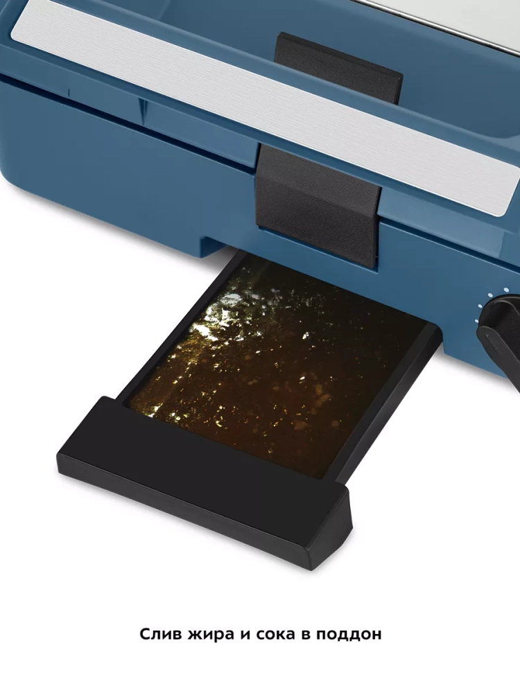 Данная модель оснащена поддоном для слива жира и сока, которые выделяются в процессе приготовления продуктов.