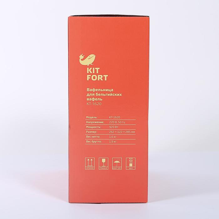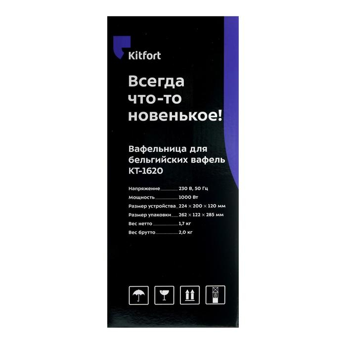 Вафельница электрическая Kitfort КТ-1620, 1000 Вт, бельгийские вафля, черная