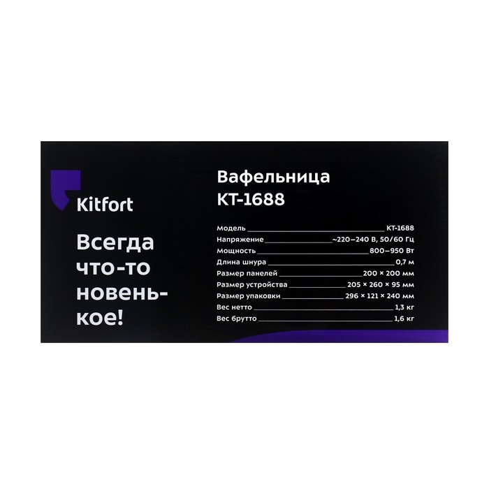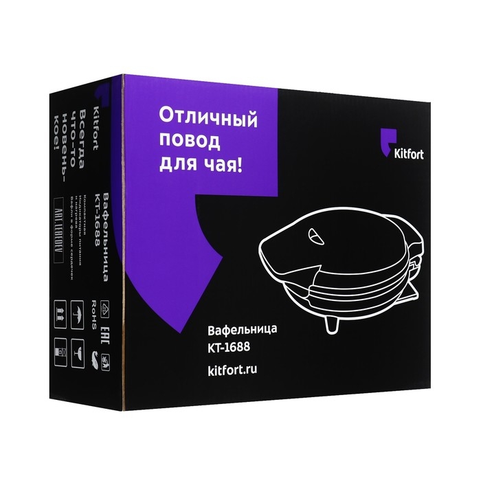 Вафельница электрическая Kitfort КТ-1688, 950 Вт, бельгийские, фиолетовая