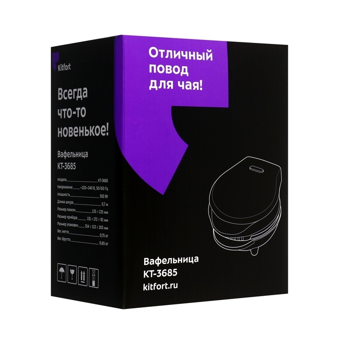 Вафельница электрическая Kitfort КТ-3685, 550 Вт, бельгийские, антипригарное покрытие