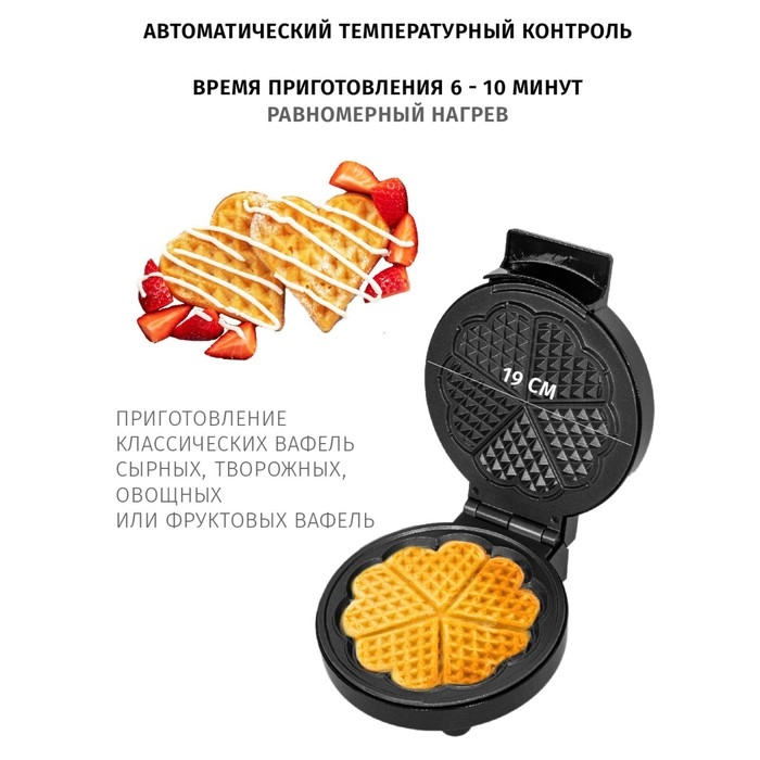 Вафельница jvc JK-MB026, электрическая, 1000 Вт, d=19 см, антипригарное покрытие, чёрная