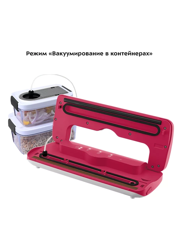 У KT-1536 есть режимы для вакуумирования сухих, а также влажных продуктов. Отдельный режим упаковки позволит вам запечатать пакет без предварительного вакуумирования. Понятная световая индикация сообщит о включении, смене и окончании выполняемого действия. Также в КТ-1536 предусмотрен отдельный режим «Контейнер» — для вакуумирования продуктов в специальных контейнерах.