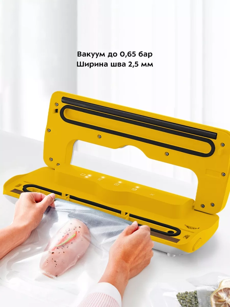 В вакууматоре отсутствует двигатель или мотор, поэтому вакууматор достаточно тихо создает вакуум в пакете.
