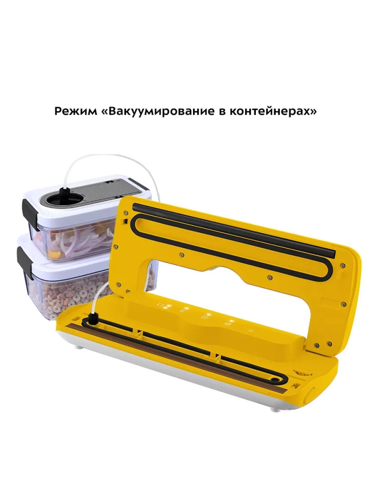У KT-1536 есть режимы для вакуумирования сухих, а также влажных продуктов. Отдельный режим упаковки позволит вам запечатать пакет без предварительного вакуумирования. Понятная световая индикация сообщит о включении, смене и окончании выполняемого действия. Также в КТ-1536 предусмотрен отдельный режим «Контейнер» — для вакуумирования продуктов в специальных контейнерах.